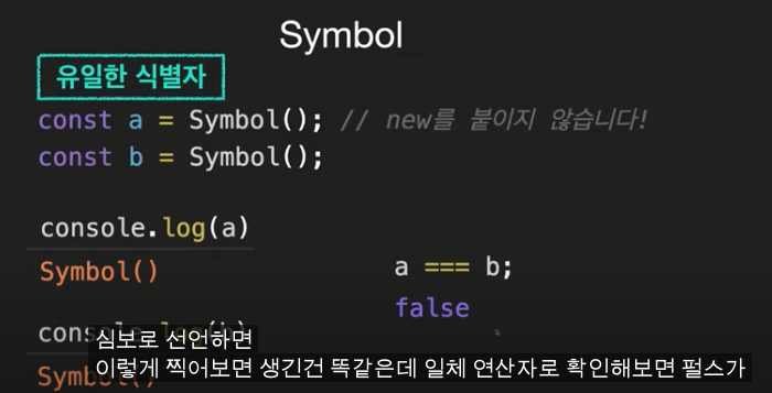 const a = Symbol(); //new๋ฅผ ๋ถ์ด์ง ์๋๋ค.
