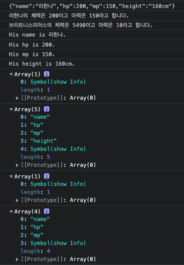 `${this.name}์ ์ฒด๋ ฅ์ ${this.hp}์ด๊ณ ๋ง๋ ฅ์ ${this.mp}๋ผ๊ณ ํฉ๋๋ค.` //๋ฆฌํ๋์ ์ฒด๋ ฅ์ 200์ด๊ณ ๋ง๋ ฅ์ 150๋ผ๊ณ ํฉ๋๋ค.