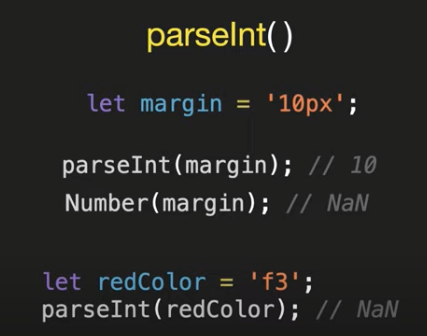 parseInt()๋ *์ฒ์*๋ถํฐ ์ซ์๋ก ๊ฐ๋ฅํ ๋ถ๋ถ๊น์ง ์ซ์๋ฅผ ์ฝ๊ณ ๋๋จธ์ง ๋ฌธ์์ด์ ๋ฌด์.