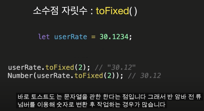 toFixed()๋ ๋ฌธ์์ด์ ๋ฐํํ๊ธฐ ๋๋ฌธ์