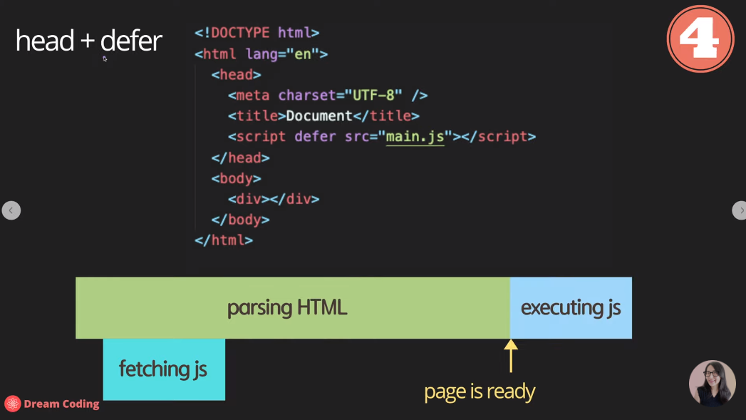 ๋ฐ๋๊น์ง ๋ ๋๋ง ํ ํ์, js ์ฝ๋๋ฅผ ์คํํ๋ค. ๋ฐ๋ผ์ ํด๋น js ์์ Html ๋ฐ๋์ ์ ๊ทผํ๋ ๊ฒ์ด ์ ๋ถ ๊ฐ๋ฅ!