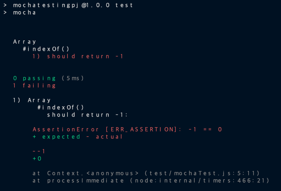 5. js ํ์ผ์ mocha ๊ณตํ์ ์๋ ๋ค์๊ณผ ๊ฐ์ ์์ ๋ฅผ ๋ถ์ฌ๋ฃ๊ณ , npx mocha ๋ฅผ ์ ๋ ฅ!