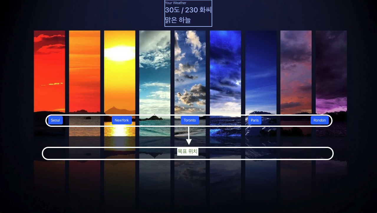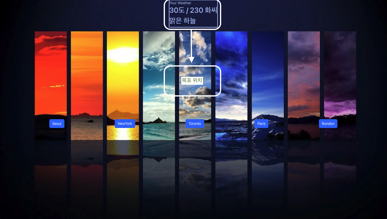 ๋์๋ณ ํ์ฌ ๋ ์จ ์ ๋ณด ์ฑํ์ด์ง๋ฅผ ๋ง๋๋ ๊ณผ์ ์ค์ div ๋ฐ์ค๋ฅผ ์ ์ ํ ์์น๋ก ๋ด๋ฆฌ๊ณ ์ถ์๋ค.