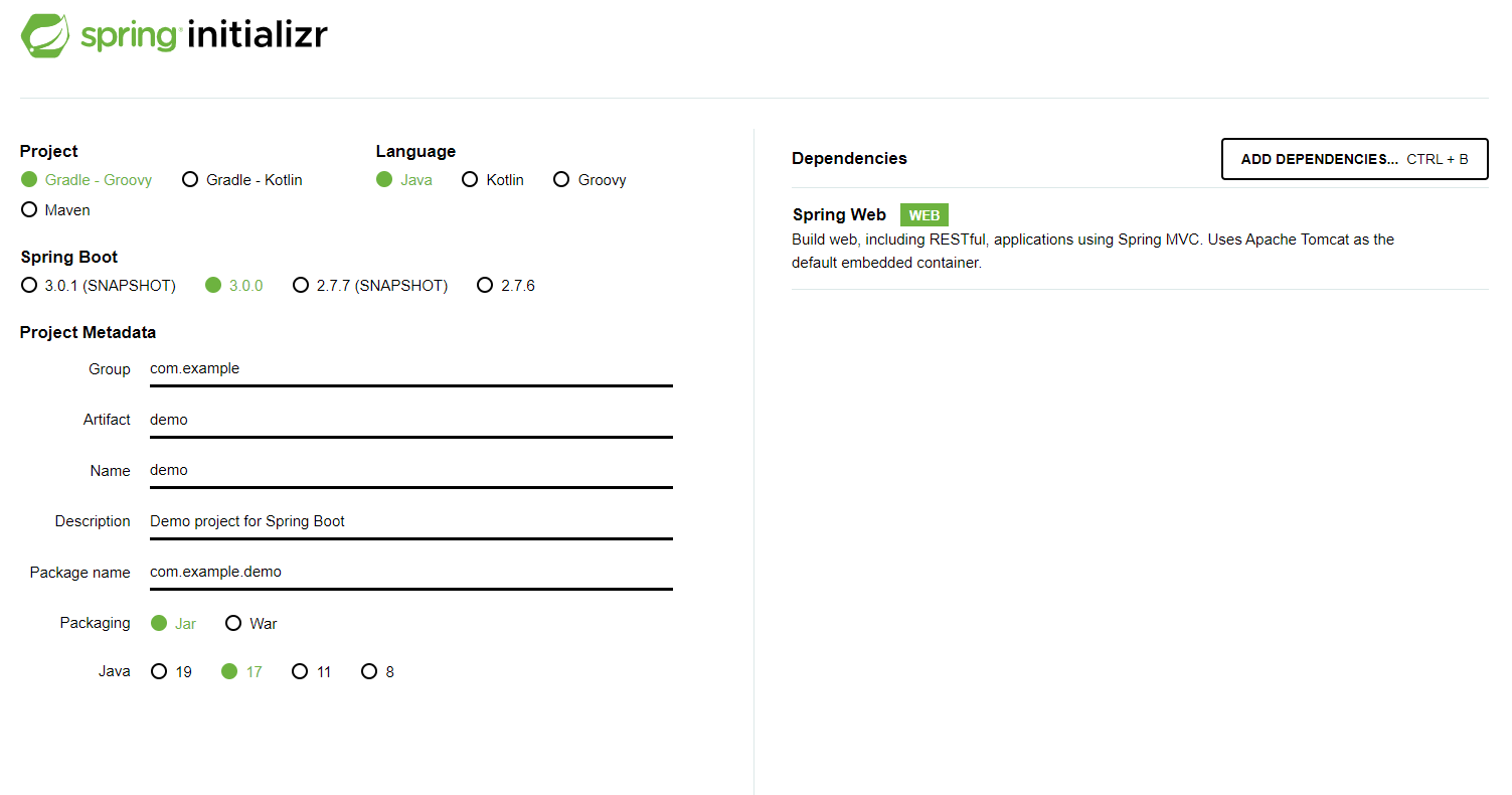 2022-12-22T20:19:04.319+09:00 INFO 33676 --- [ main] o.s.b.w.embedded.tomcat.TomcatWebServer : Tomcat started on port(s): 8080 (http) with context path ''