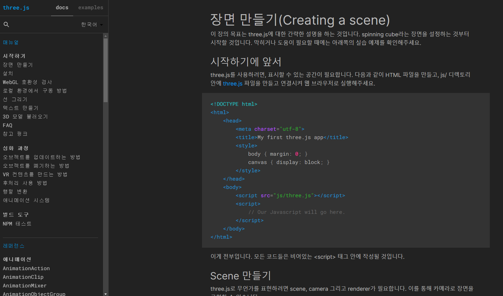 ์ฅ๋ฉด ๋ง๋ค๊ธฐ – three.js docs (threejs.org)