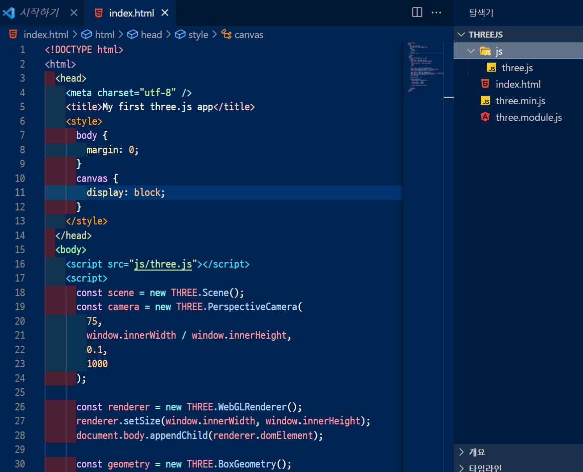 [3D WebGL][three.js] three.js ํ๋ก์ ํธ ์์ํด๋ณด๊ธฐ