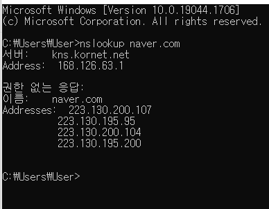 ์ปค๋งจ๋์ฐฝ์ nslookup naver.com
