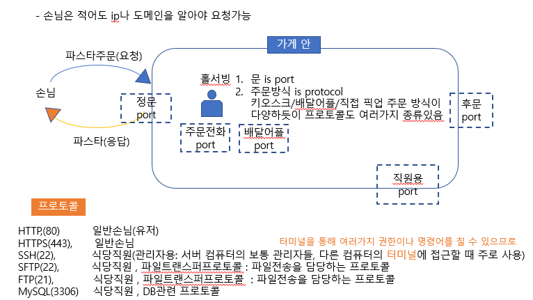 ํต์ ์ฃผ๋ฌธ๋ฐฉ์(ํ๋กํ ์ฝ)์ ๋ฐ๋ผ port๊ฐ ์ ํด์ ธ์๋ค.