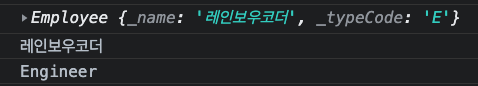 const employee = Employee.createEngineer('๋ ์ธ๋ณด์ฐ์ฝ๋');