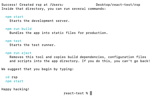 npx create-react-app ํด๋๋ช ๋๊ฐ์ ๊ฒฝ์ฐ๋ npx create-react-app rsp ๋ก ํจ