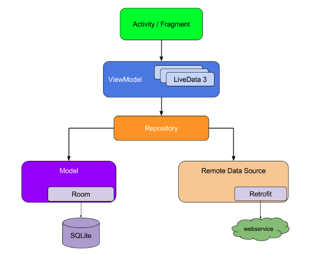 ์๋ฅผ ๋ค์ด, ViewModel์์๋ ๋ฐ์ดํฐ๊ฐ ๋ก์ปฌ DB์์ ์ค๋์ง, ์๋ฒ์์ API ์๋ต์ ํตํด ์ค๋ ๊ฒ์ธ์ง ์ถ์ฒ๋ฅผ ๋ชฐ๋ผ๋ ๋๋ค. Repository๋ฅผ ์ฐธ์กฐํ์ฌ Repository๊ฐ ์ ๊ณตํด์ฃผ๋ ๋ฐ์ดํฐ๋ฅผ ์ด์ฉํ๊ธฐ๋ง ํ๋ฉด ๋๋ค.